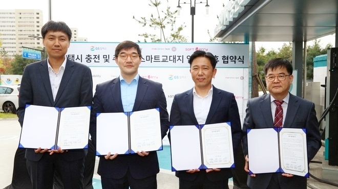 이미지 확대보기마카롱택시 운영사인 KST모빌리티(대표 이행열)는 서울 송파구 GS칼텍스 스마트위례주유소에서 GS칼텍스(대표 허세홍), 소프트베리(대표 박용희)와 ‘전기택시 충전을 위한 거점 충전소 사업’ 제휴를 위한 업무협약식을 가졌다고 이날 밝혔다.