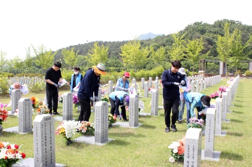 이미지 확대보기이날 대전자생한방병원 임직원 및 대전자생봉사단 20여 명은 장병 제3묘역에 모여 순국선열과 호국영령들의 희생을 기리는 묵염으로 봉사활동을 시작했다. 이후 묘역 주변 잡초와 쓰레기 제거를 비롯해 1200여 개의 태극기를 꽂으며 호국보훈의 의미를 되새겼다.