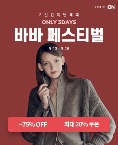 이번 행사에는 바바패션 대표 브랜드 JJ지고트, 더아이잗뉴욕 등 모든 브랜드가 참여하며 가을·겨울 신상품을 포함, 인기 상품을 최대 75% 할인된 가격에 선보인다. 또 전 상품 무료 배송해주고 엘포인트 추가 증정의 혜택도 제공한다.