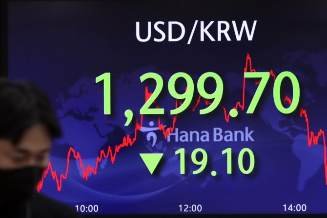 이미지 확대보기1일 서울외환시장에서 원·달러 환율은 전 거래일보다 19.6원 내린 1299.7원에 마감했다. 이날 17.8원 하락한 1301원에 개장한 환율은 장 초반부터 낙폭을 확대하면서 1300원 밑으로 내려왔다. 장중 한때 1295.8원까지 밀리기도 했다.