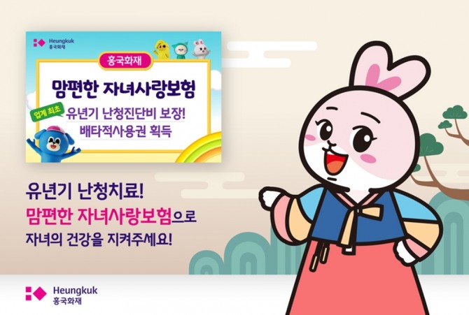 이 상품은 지난해 유년기를 대상으로 한 보상 담보 5종을 개발해 배타적사용권까지 획득해 더 주목을 받았다. 흥국화재가 배타적사용권을 획득한 담보는 △영구적 중등도이상 난청진단비 △영구적 중등고도이상 난청진단비 △영구적 고도이상 난청진단비 △신생아 난청진단비 △전반 발달장애 진단비 등이다.