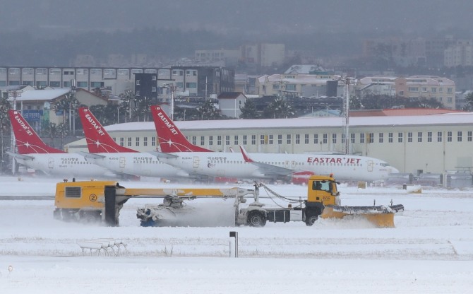 기상청은 27일까지 제주도 산지에 10∼40㎝(많은 곳 50㎝ 이상)의 눈이 쌓이겠으며 동부 지역에서 5∼20㎝, 해안(동부 제외) 5∼10㎝의 눈이 내릴 것으로 예측했다.