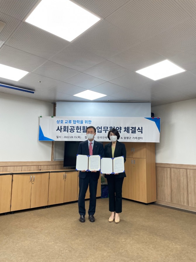 이미지 확대보기전남 함평군가족센터(센터장 김기영)와 한국전력공사 ICT운영처(처장 이영구)는 지난 15일 사회공헌활동 업무협약식을 개최하여 지역사회와 소통하고 나눔의 가치를 실현하는 동반자로서 상호 협력할 것을 협의했다.