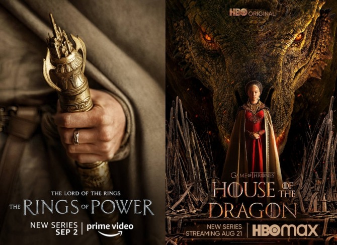 ‘힘의 반지’와 ‘하우스 오브 드래곤’은 둘다 넷플릭스를 따라잡겠다고 벼르고 있는 프라임 비디오와 HBO가 막대한 예산을 들여 전력을 투구해 준비한 작품이라는 공통점과 아울러 대히트작인 ‘반지의 제왕’과 ‘왕좌의 게임’의 후속작이라는 점도 비슷하다.