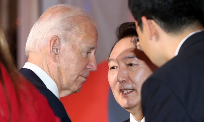 윤 대통령과 바이든 대통령 간 면담은 지난 5월 말 바이든 대통령의 한국 방문 이후 4개월 만이다. 두 정상은 서로 손을 맞잡고 48초 동안 대화했고, 바이든 대통령은 윤 대통령 어깨에 손을 올리며 친근감을 표시했다.