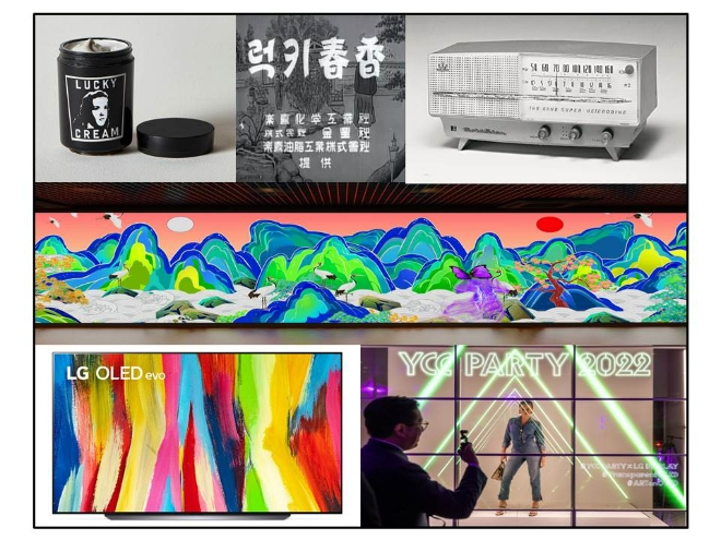 LG는 '럭키크림', 'A-501' 라디오 외에도 궁중 한방 화장품 '후', 'LG 프라엘 LED 마스크' 등을 전시하고, 1956년 우리나라에서 처음으로 애니메이션 기법을 활용해 제작한 락희화학공업사의 '럭키치약·비누' 광고인 '럭키춘향편'도 선보인다.