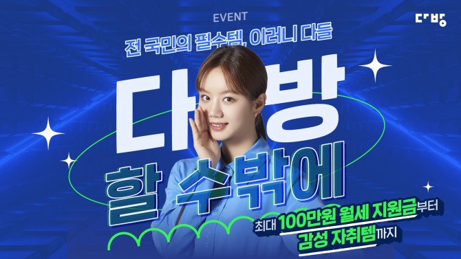 이미지 확대보기이번 이벤트는 최근 론칭한 '방 구하기 대세 플랫폼, 다방'의 신규 캠페인을 기념해 마련됐다.