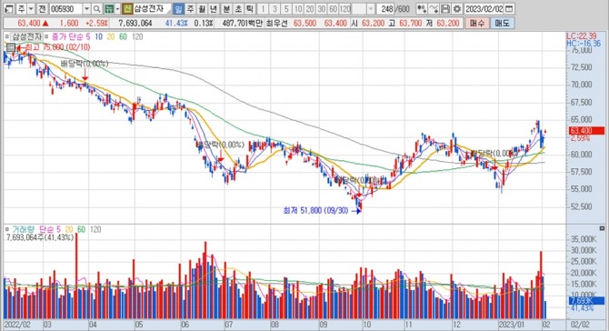 삼성전자의 지난달 30일 종가는 6만3300원으로 2일 거래되고 있는 주가는 실적발표 이전의 주가로 되돌아간 셈입니다.