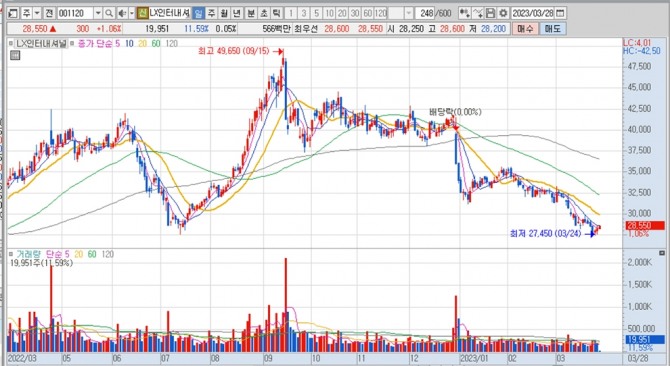LX인터내셔널의 주가는 28일 오전 9시 20분 현재 전일보다 300원(1.06%) 오른 2만8550원에 매매되고 있습니다.