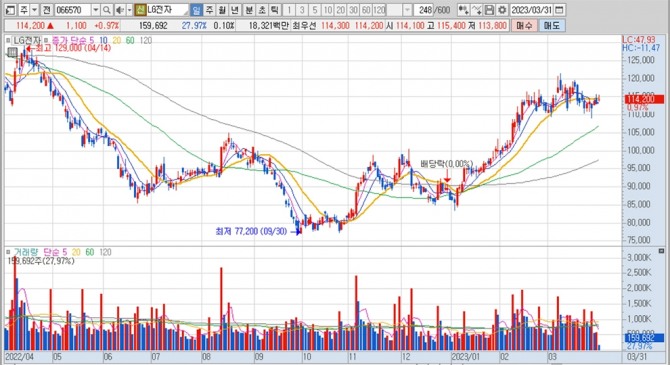 NH투자증권은 LG전자가 올해 1분기 비용 절감 효과로 양호한 실적을 달성할 전망이고 EV(전기차) 부품에서 기존 고객의 성장과 고객사 다변화를 통한 수주잔고 증가세도 매력적이라고 판단해 LG전자에 대해 투자의견 매수와 목표주가 15만원을 그대로 유지했습니다.
