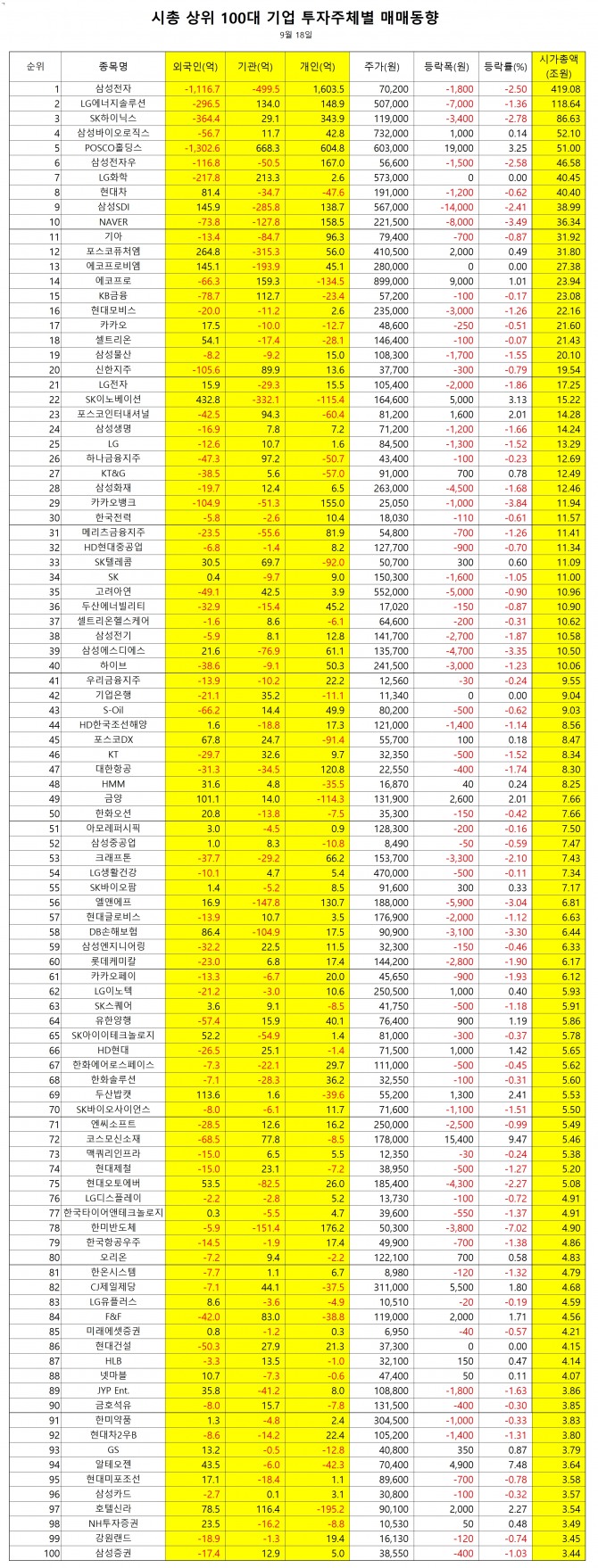 이미지 확대보기▲ 유가증권 시장 매매 동향(18일)