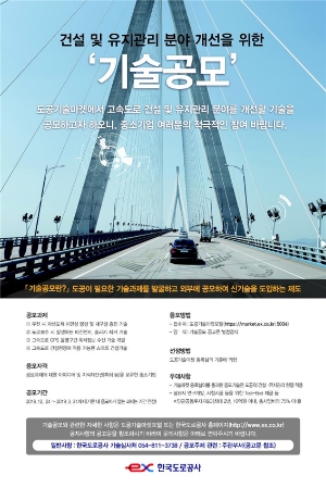 한편 공모와 관련된 자세한 내용은 한국도로공사(www.ex.co.kr), 도공기술마켓포털(https://market.ex.co.kr:5004), 한국도로공사 전자조달시스템(ebid.ex.co.kr) 홈페이지 공지사항에서 열람할 수 있다.