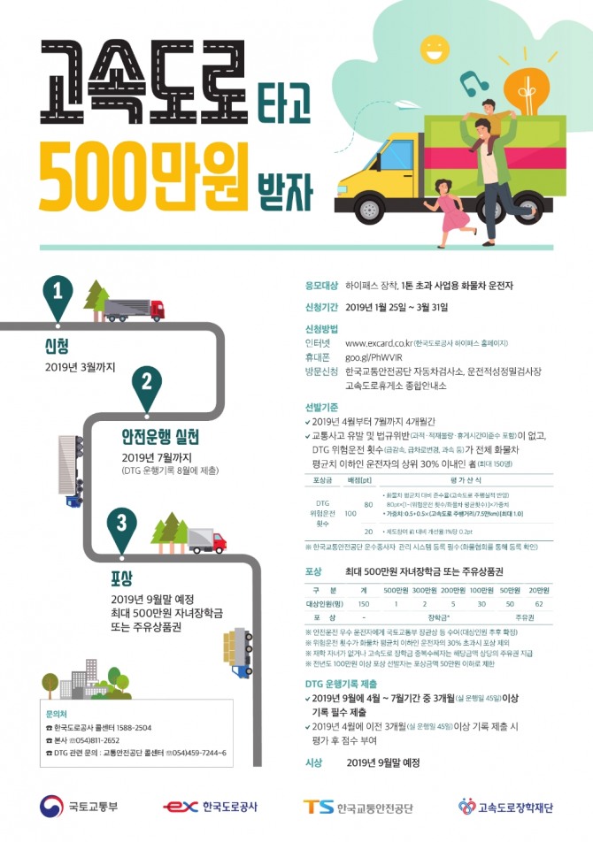 이미지 확대보기한국도로공사는 오는 25일부터 3월31일까지 안전 운전 실천에 앞장설 '모범 화물운전자'를 모집한다고 밝혔다.