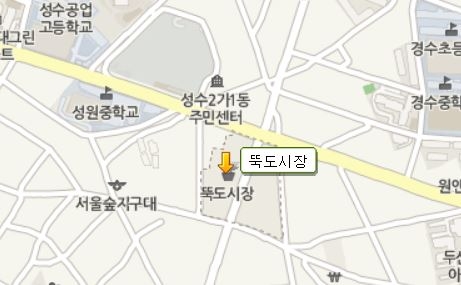뚝도시장은 지하철 건대입구역에서 도보로 800m정도에 위치에 있다.