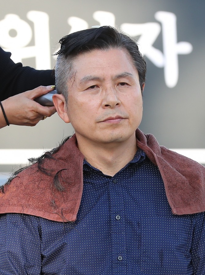 황 대표는 강 수석의 재고 요청에도 이날 분수대 광장에서 삭발을 강행했다. 제1 야당 대표로서는 최초의 삭발이다.