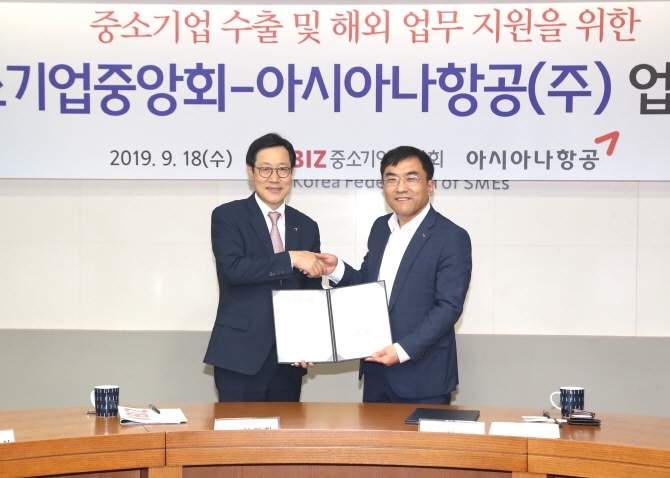 중기중앙회는 지난 7월 25일 에어부산과의 업무협약으로 중소기업이 국내선 항공료 할인을 지원받을 수 있게 했고 이어서 아시아나항공으로 국제선 항공요금도 할인을 받을 수 있게 해 중소기업협동조합과 중소기업의 항공요금 부담이 크게 경감할 것으로 기대하고 있다.