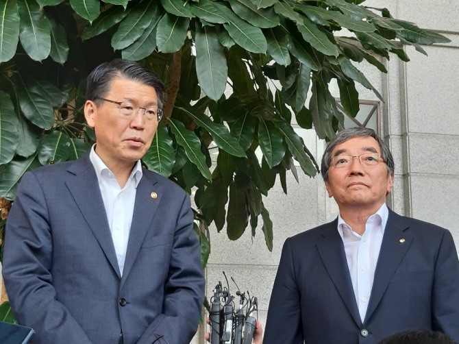 이미지 확대보기윤 금감원장은 19일 서울 영등포구 금감원에서 은성수 금융위원장과 비공개 면담을 가진 뒤 기자들과 만나 이같이 말했다.