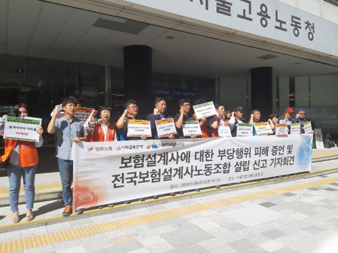 설계사들은 ‘보험설계사에 대한 부당행위 피해 증언‧전국보험설계사노동조합 설립 신고 기자회견’에서 보험회사로부터 부당행위를 당했다며 피해사례를 밝히고 피해 방지를 위해 노동조합이 필요하다고 주장했다.