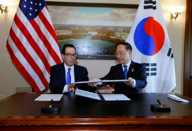 미 재무부가 지난 5월 상반기 환율보고서에서 한국과 일본 등 9개국을 환율 관찰대상국으로 지정하면서 한국이 평가기준 3개 요소 중 1개만 해당하는 상황을 다음 보고서 발표시점까지 유지하면 관찰대상국에서 제외될 것이라고 밝힌 바 있다.