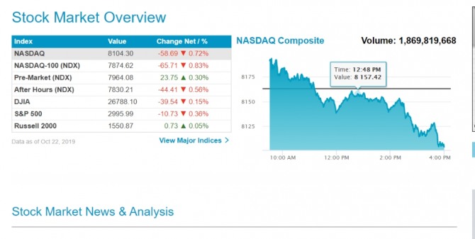 NASDAQ 8104.30 -58.69 ▼ 0.72%