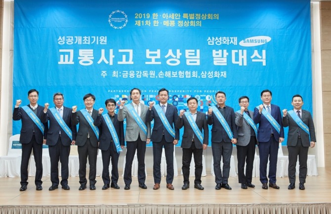 이미지 확대보기이날 부산 벡스코에서는 손해보험협회, 금융감독원, 경호안전통제단, 준비기획단, 부산지방경찰청, 부산광역시청 등 관계자 120여명이 참석한 가운데 ‘한-아세안 특별정상회의’와 ‘제1차 한-메콩 정상회의’ 교통사고 보상팀 발대식이 열렸다.