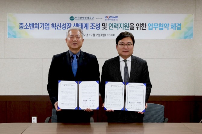 이미지 확대보기중진공은 "2일 서울 당산동 한국산업인력공단 서울남부지사에서 '중소벤처기업 혁신성장 생태계 조성과 인력지원 업무협약'을 맺었다"고 3일 밝혔다.
