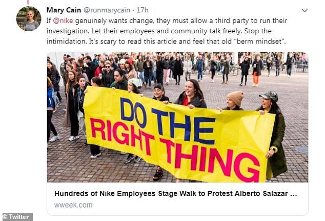 나이키 직원들은 10일(현지시간) 회사가 한 여성 육상 운동 선수에 대해 부당하게 학대했다며 불만을 품고 항의시위를 했다.