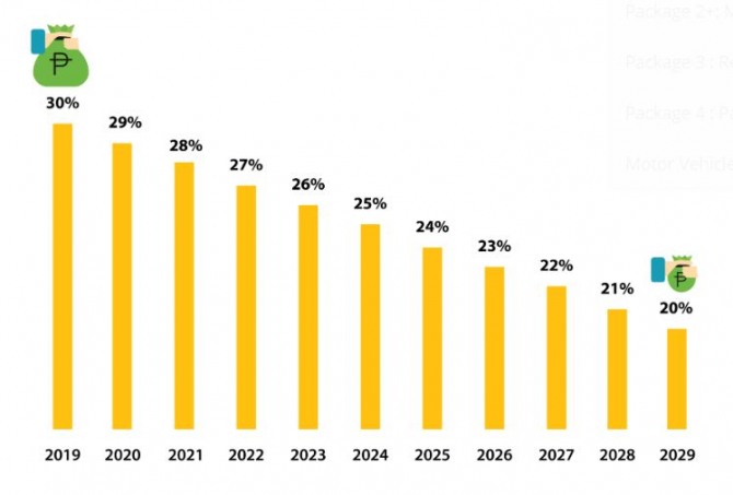 ㅇ 법인세율 인하: 필리핀 재무부는 현 30%인 법인세율을 2020년 1월부터 인하하기 시작해, 2029년까지 20%로 인하할 계획