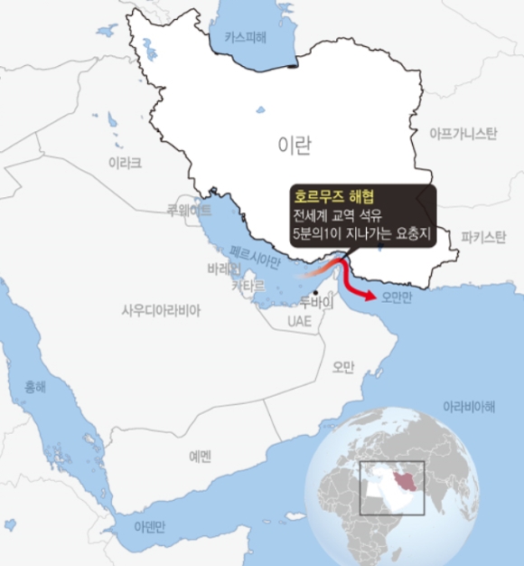 아시아에 공급되는 원유물량 약 80%와 전세계 원유물량의 20~30%가 호르무즈 해협을 통과해 운송된다.