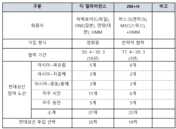 ‘디 얼라이언스’는 아시아를 비롯해 유럽, 지중해, 북아메리카, 중앙아메리카, 중동, 홍해, 인도 등 전세계 78개 항만에 기항하며, 총 33개의 서비스를 제공할 계획이다.