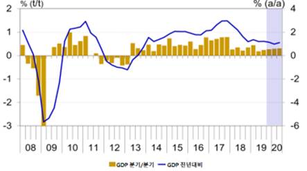 - 2020년에는 전년과 비슷한 추세를 보일 것으로 소폭 증가한 0.8%로 완만한 회복세를 유지할 전망