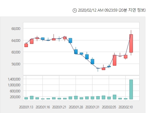 11일 주가가 11.88% 급등한 6만5900원으로 마감했다.