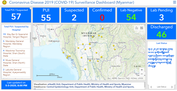 미얀마 보건체육부 코로나 19 관련 실시간 상황판