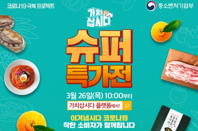 29일 중기부에 따르면, 이번 '가치삽시다' 온라인 기획전은 내수 위축과 초·중·고등학교 개학 연기 등으로 판로에 애로을 겪는 소상공인의 지역특산물·전통시장 제품, 특히 대구·경북 지역 피해 소상공인을 중점 지원하기 위해 마련됐다.