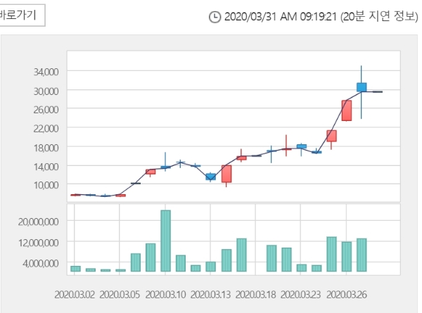 코로나19 진단키트 판매에 따른 실적개선 기대가 투자심리에 영향을 미치고 있는 것으로 보인다.