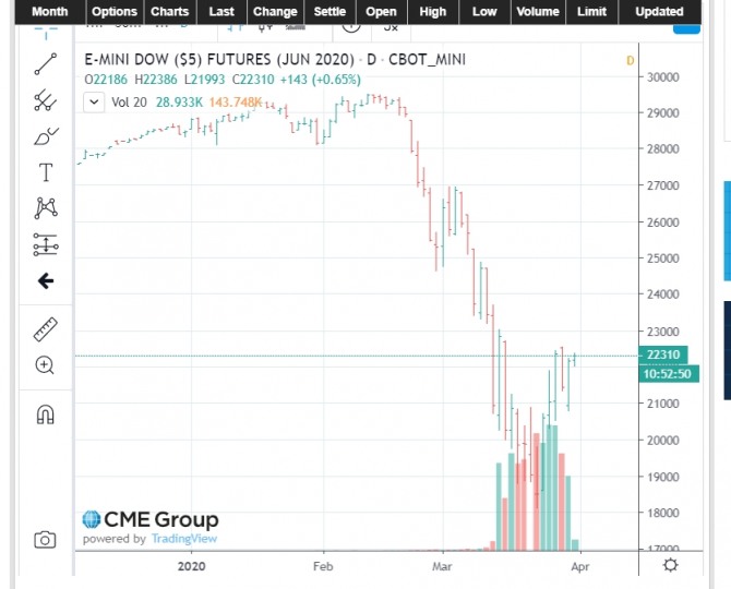 E-mini Dow ($5) Futures YMM0 JUN 2020 JUN 2020 22313 +146 22186 22386 21993 28,947