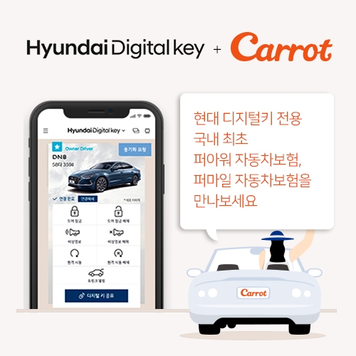 이미지 확대보기신규 출시된 보험은 ‘퍼아워(Per-Hour) 자동차보험’과 ‘퍼마일(Per-Mile) 자동차보험 디지털키 운전자 확대 특약’이다. 자동차 키 없이도 앱으로 권한을 부여받은 사람이 운전할 수 있는 현대자동차의 디지털 키 서비스의 특성에 최적화돼 개발됐다.