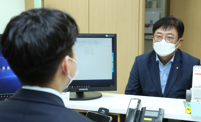 이미지 확대보기8일 저축은행중앙회에 따르면 박 회장은 이날 서울 종로구 NH저축은행 동대문지점을 방문해 현장의 애로사항을 듣고 직원들을 격려했다.
