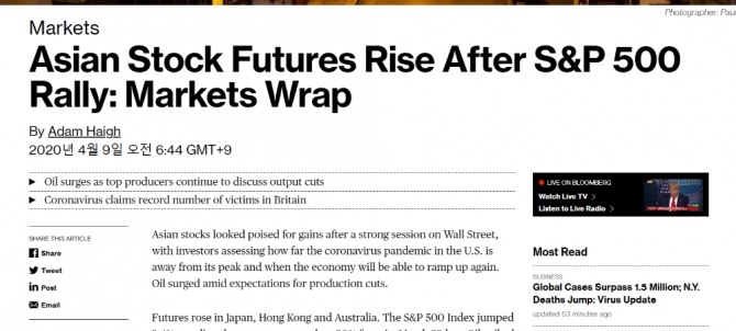 블룸버그 큰 장 온다, 아시아증시 선물도 큰폭 상승 코스피 코스닥 원달러환율 기대