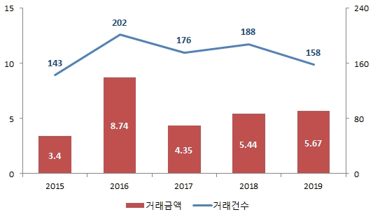 · 거래건수는 158건으로 전년대비 약 16% 감소
