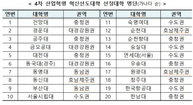 이미지 확대보기교육부는 '4차 산업혁명 혁신선도대학' 20개대를 신규로 선정해 22일 발표했다.
