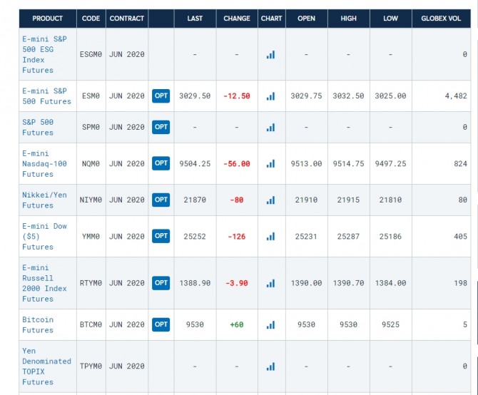 S&P 500 Futures SPM0 JUN 2020 JUN 2020 - - E-mini Nasdaq-100 Futures NQM0 JUN 2020 JUN 2020 9506.25 -54.00