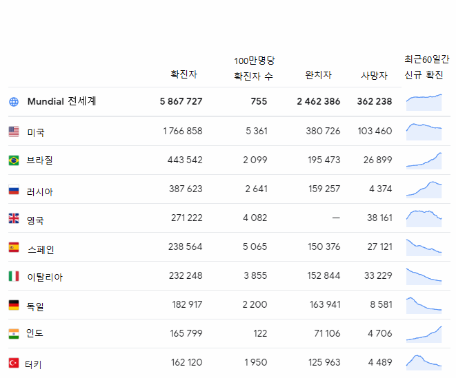 5월 28일 기준 브라질의 코로나19 확진자 수는 44만 3542명으로 러시아, 영국, 스페인을 제치고 미국에 이어 세계 2위이다. 미국 CNN이 분석한 바에 따르면 브라질은 인구 수 대비 코로나19 진단 검사 비율이 매우 낮은 것으로 나타났다. 브라질은 인구 100만 명당 평균 3459건의 테스트가 실시되는 반면 러시아는 100만 명당 4만 995건, 미국은 3만 937건의 테스트가 실시되는 것으로 조사됐다.