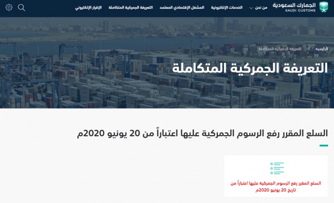 사우디 관세청은 6월 20일부 관세인상 적용 공지를 홈페이지에 게재했다. 최초 5월 27일 발표하고 6월 10일부 적용 예정이었으나 시스템 미비 등의 사유로 1차 유예, 그 후 10일 만인 6월 20일에 관세인상 적용을 재발표했다.