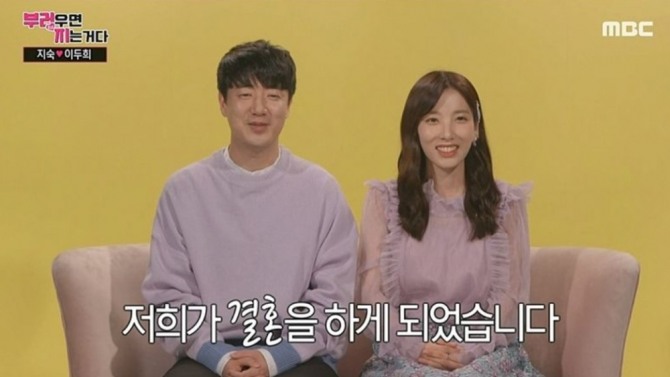 이미지 확대보기29일 방송된 MBC 예능 프로그램 '부러우면 지는거다'(이하 '부럽지') 시즌1 마지막 회에서는 지숙과 이두희가 출연해 결혼 소식을 전했다.