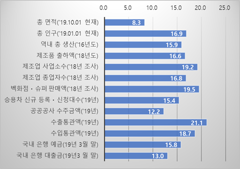 일본 전국 대비 간사이지역 경제규모(단위:%)