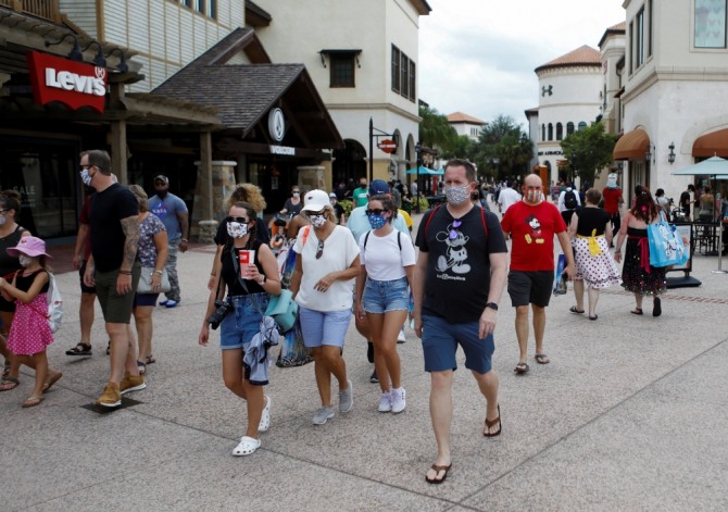 특히 디즈니월드가 위치한 플로리다주는 지난 2주 동안 미국 내에서 가장 많은 10만9천여명의 신규 확진자가 나왔다.[연합뉴스]
