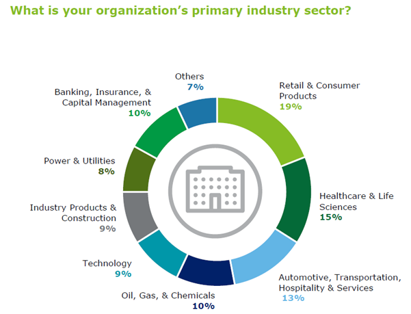 2019년 셰어드서비스를 운영 중인 총 379개의 기업을 대상으로 한 딜로이트(Deloitte)사의 조사에 따르면 셰어드서비스는 위 그래프와 같이 여러 산업에서 적용되고 있으며 운영 기업들의 규모도 큰 편이다. 총 응답기업의 54%는 연 매출이 50억 달러 이상이며, 총 응답기업의 15%는 ‘Global Fortune 500’에 이름을 올리고 있다. 또한 격년으로 진행되는 조사에서 약 50%가 신규 응답기업이라는 점을 볼 때 글로벌 기업들의 셰어드서비스 운영이 확장되고 있음을 증명한다. 따라서 글로벌기업을 목표로 해외취업을 준비하는 취업 준비생은 셰어드서비스란 개념을 꼭 숙지해야 한다.
