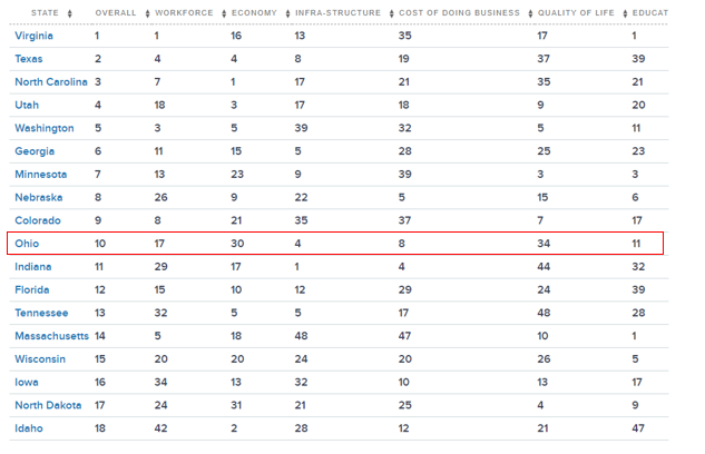 - 오하이오주 미국 내 GDP 7위, 기업을 경영하기 좋은 주 순위 10위 선정-