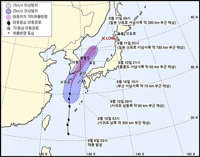 이날 오후 9시께부터 11일 오전 사이에는 충청과 전북까지 태풍으로 인한 집중호우가 예상된다.
